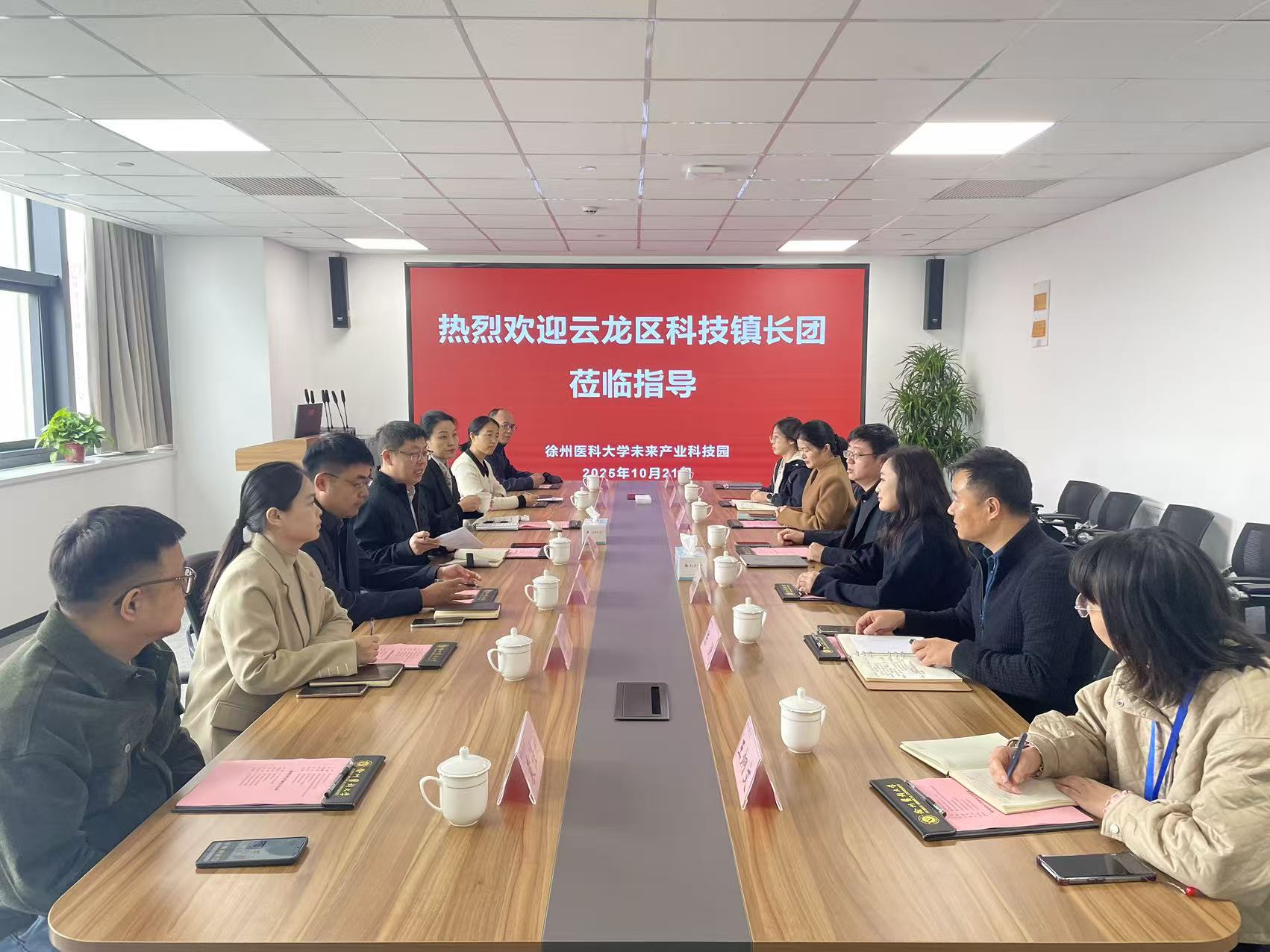 10月21日上午,云龙区副区长、科技镇长团团长姜南一行赴未来产业科技园考察。区科技局局长鹿静、云盛集团总经理贾淑鹏、药学院院长周雪妍、护理学院副院长张小曼及区科技镇长团成员参加活动。活动由资产公司总经理轩萱主持。