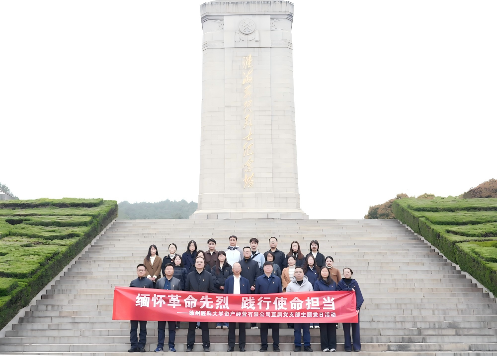 为深切缅怀革命先烈丰功伟绩,弘扬淮海战役精神,强化党建引领作用,3月24日上午,徐州医科大学资产经营有限公司直属党支部组织全体党员及下属子公司全体员工,赴淮海战役烈士纪念塔开展“缅怀革命先烈 践行使命担当”主题党日活动。