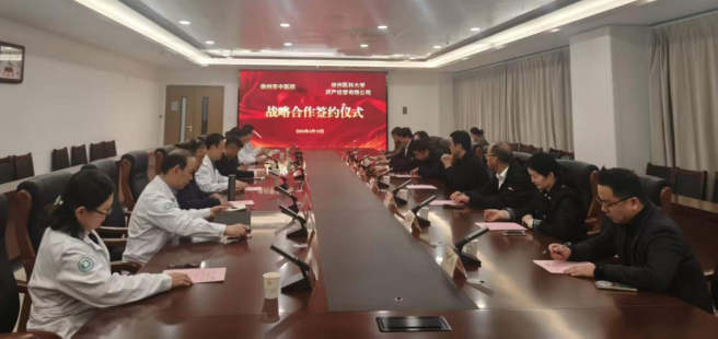 4月10日下午,徐州医科大学资产经营有限公司与徐州市中医院战略合作签约仪式在徐州市中医院新院区举行,徐州医科大学党委常委、副校长刘慎军,徐州市卫生健康委党委书记、主任黄广振,徐州市中医院党委书记范从海、副院长季培琛,徐州医科大学资产经营有限公司直属党支部书记丛宁、总经理轩萱,学校相关职能部门及院系领导出席。仪式由徐州市中医院副院长梁田主持。