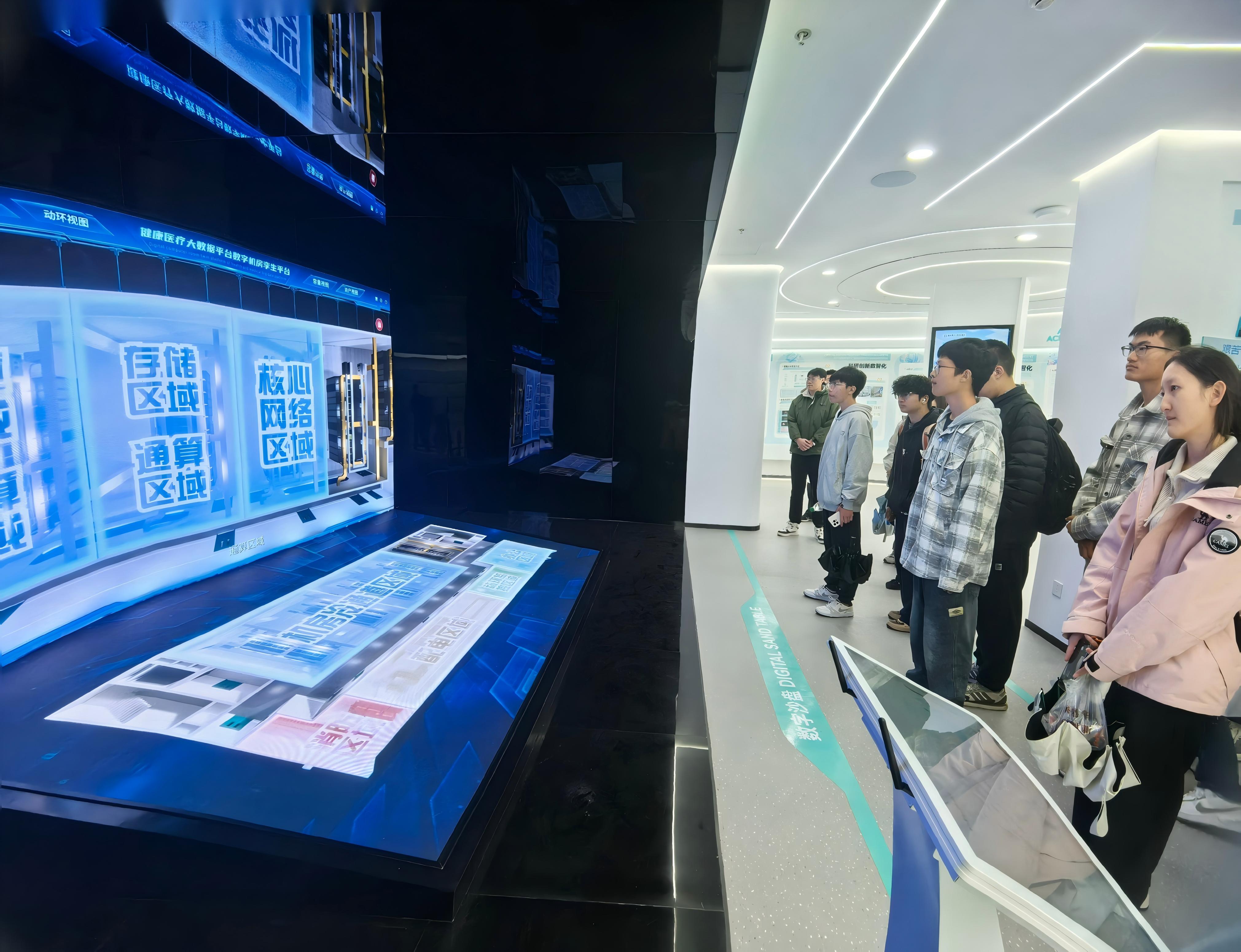 鼓楼园区聚焦“数字经济”与“医药健康”产业赛道,积聚了一批高能级科研平台及行业龙头企业。园区工作人员向学生系统介绍园区的整体规划布局、发展历程及建设成效,并带领学生实地探访淮海医学科技创新中心、江苏省医学影像与数字医学工程研究中心及园区优质在孵企业。通过参观科研平台和与企业负责人深度交流,学生深刻领悟到创新平台在推动医学技术“从实验室走向产业化”过程中的关键桥梁作用;泉山园区聚焦“中医药领域”,在泉山园区学生依次参观二十四节气广场、中医诊疗中心、理疗中心及文化长廊,通过节气灯阵、经络图展、中药材实物等直观了解了淮海中医药研究院在养生产品研发、药膳茶饮创新等方面的实践创新成果,深入理解园区“文化+科技+健康”的创新发展模式。
